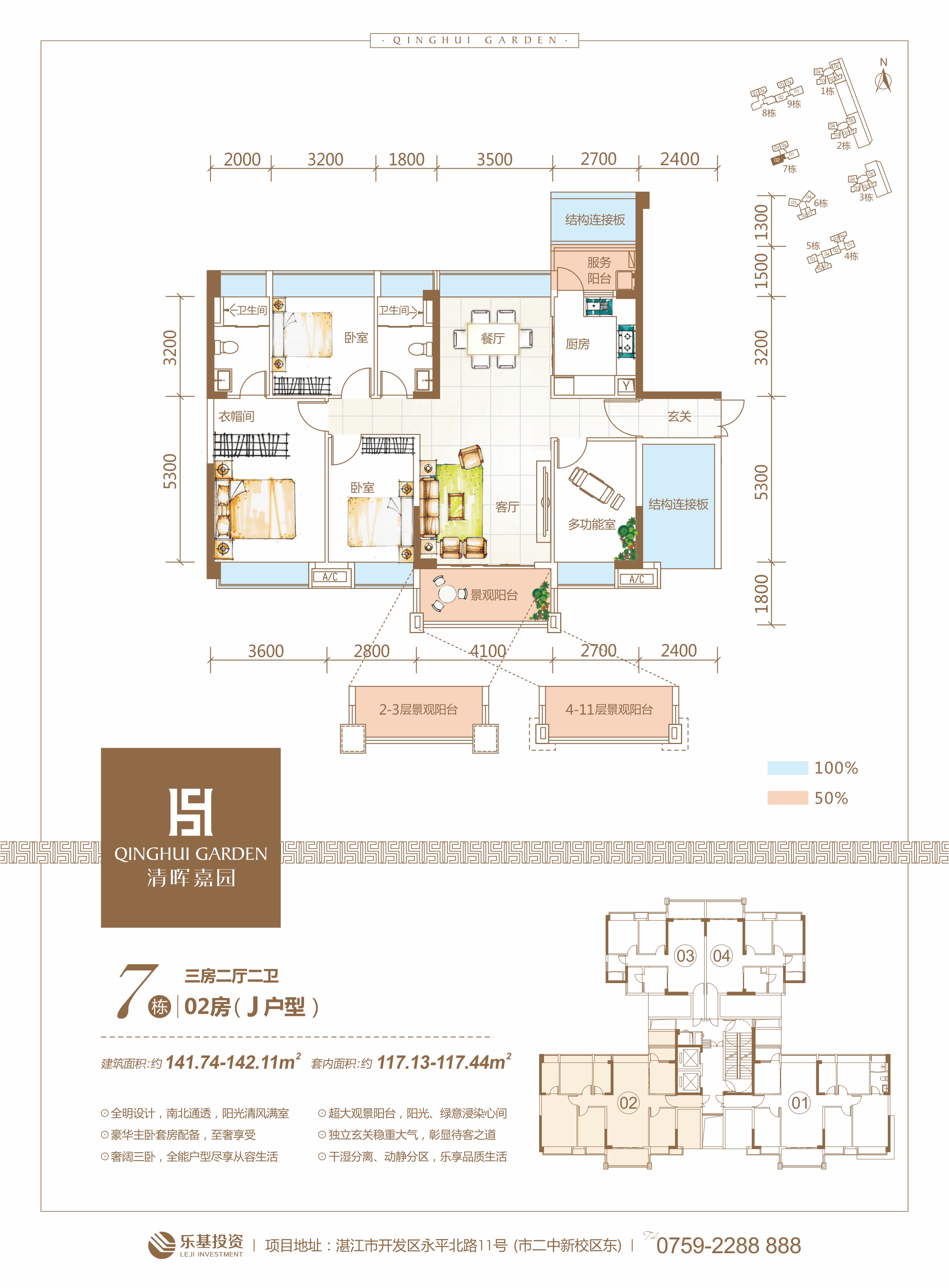 纯板式南向瞰景大户,通风采光极佳 超大观景阳台,中心园林景观 方正实用,得房率高 奢华主卧,舒适享受
